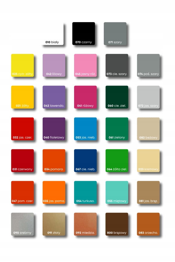 Paleta prezentuje kolory dostępne w cenie aukcji, przy wyborze kolorów z Palety Podstawowej nie ponosisz żadnych dodatkowych opłat.