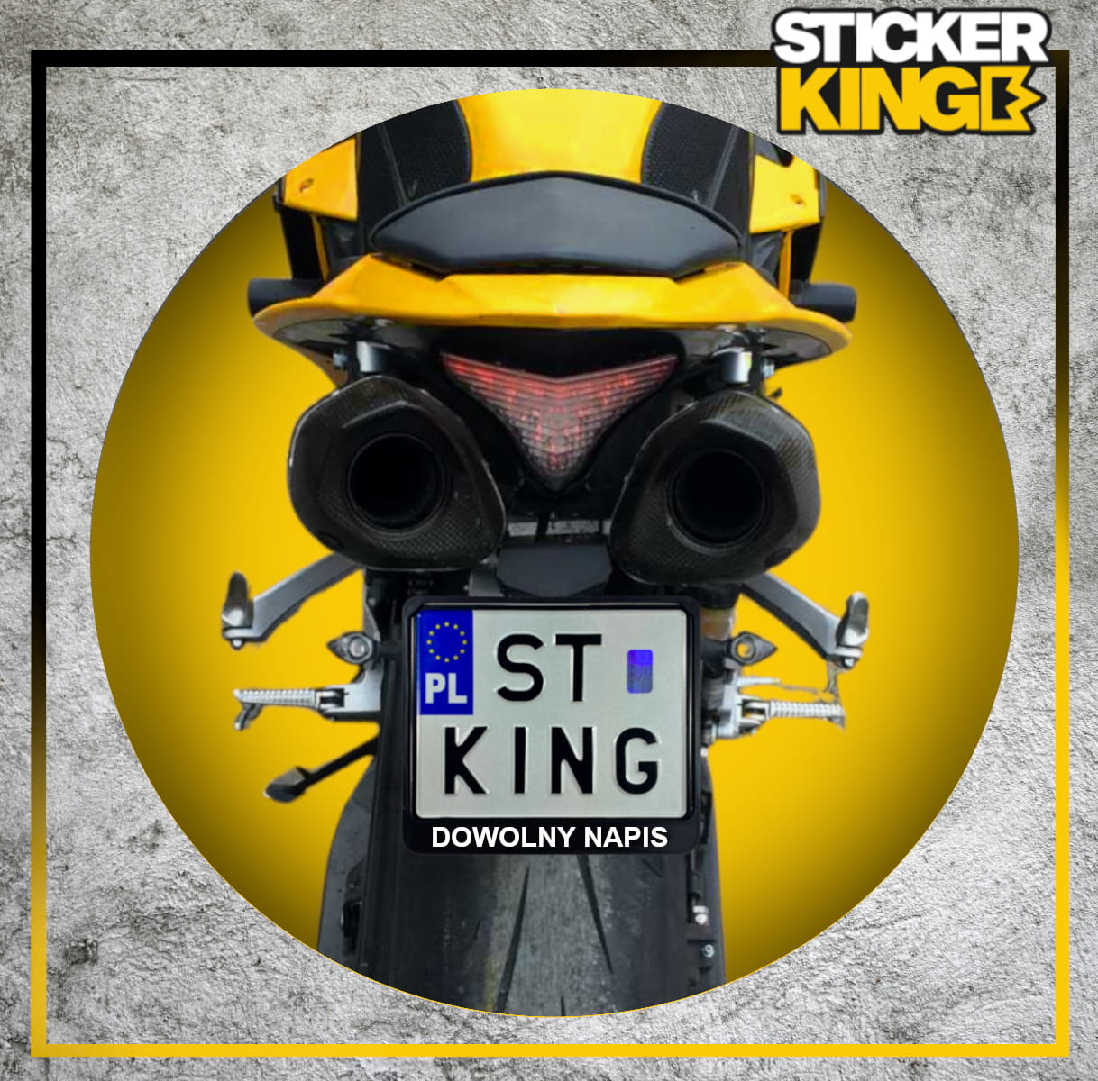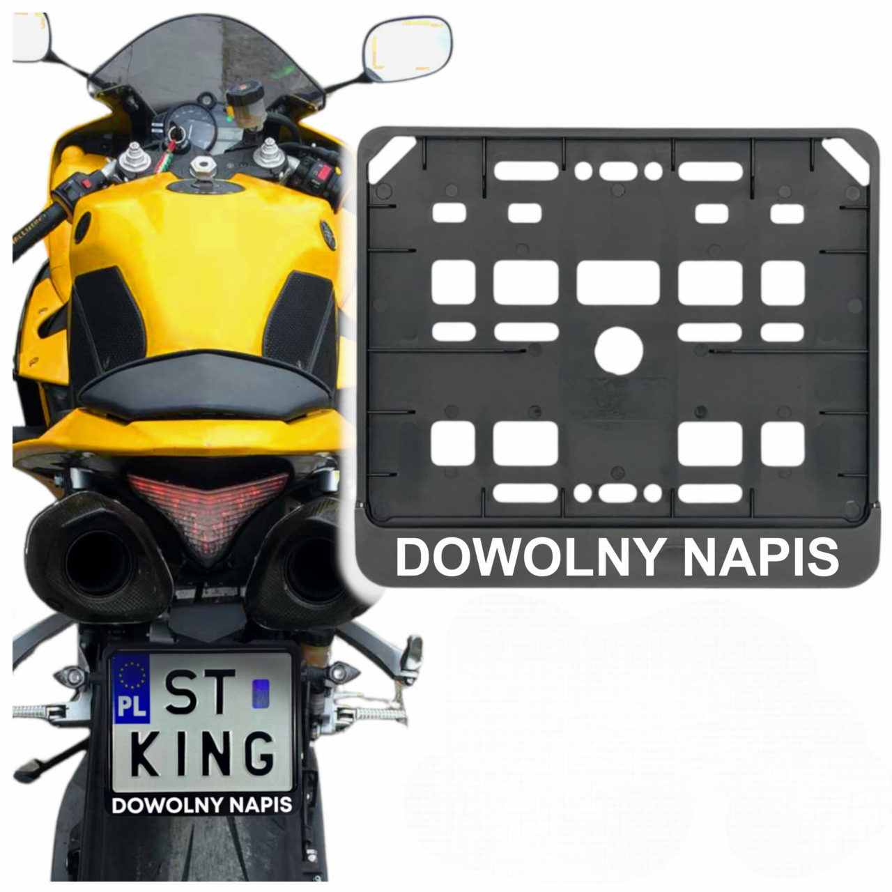 ✅ 1 sztukę ramki pod motocyklową tablicę rejestracyjną z własnym napisem