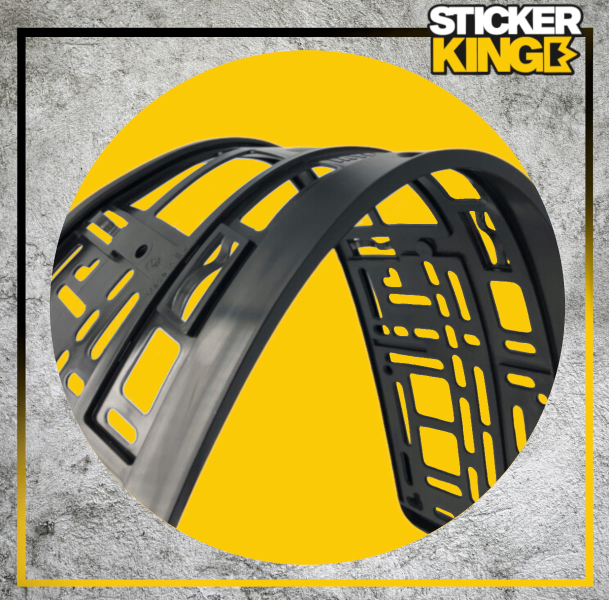 Drukowanie w małych ilościach jest bardzo nieopłacalne, postanowiliśmy więc wprowadzić personalizację na ramce tablicy rejestracyjnej przy pomocy folii samoprzylepnej już od jednej sztuki.